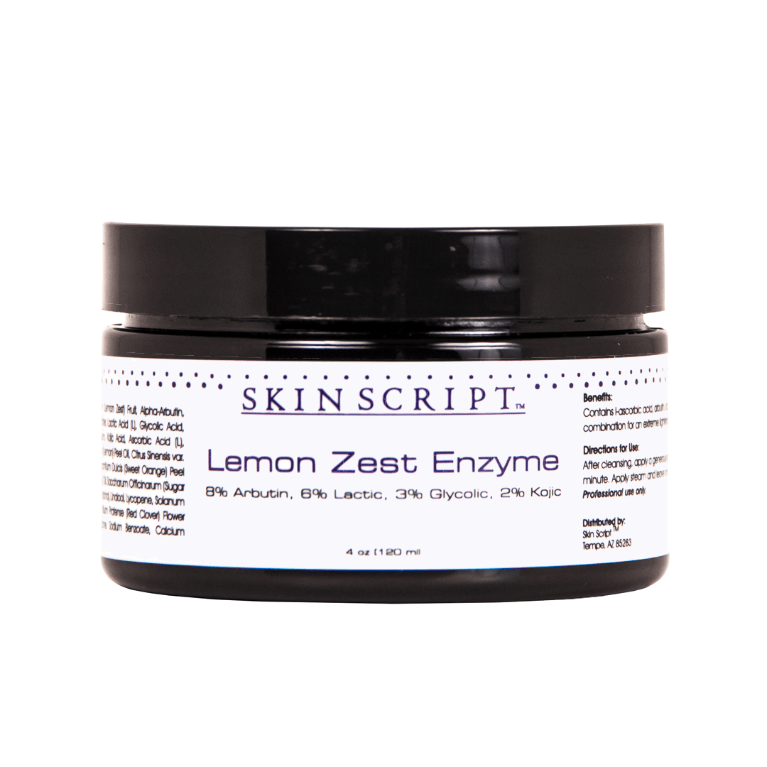 The Lemon Zest Enzyme exfoliates and brightens the skin with the antioxidant and brightening benefits of lemon. It promotes deep hydration that protects from environmental damage while relieving the surface signs of aging. Arbutin and kojic acid provide extreme lightening capabilities.