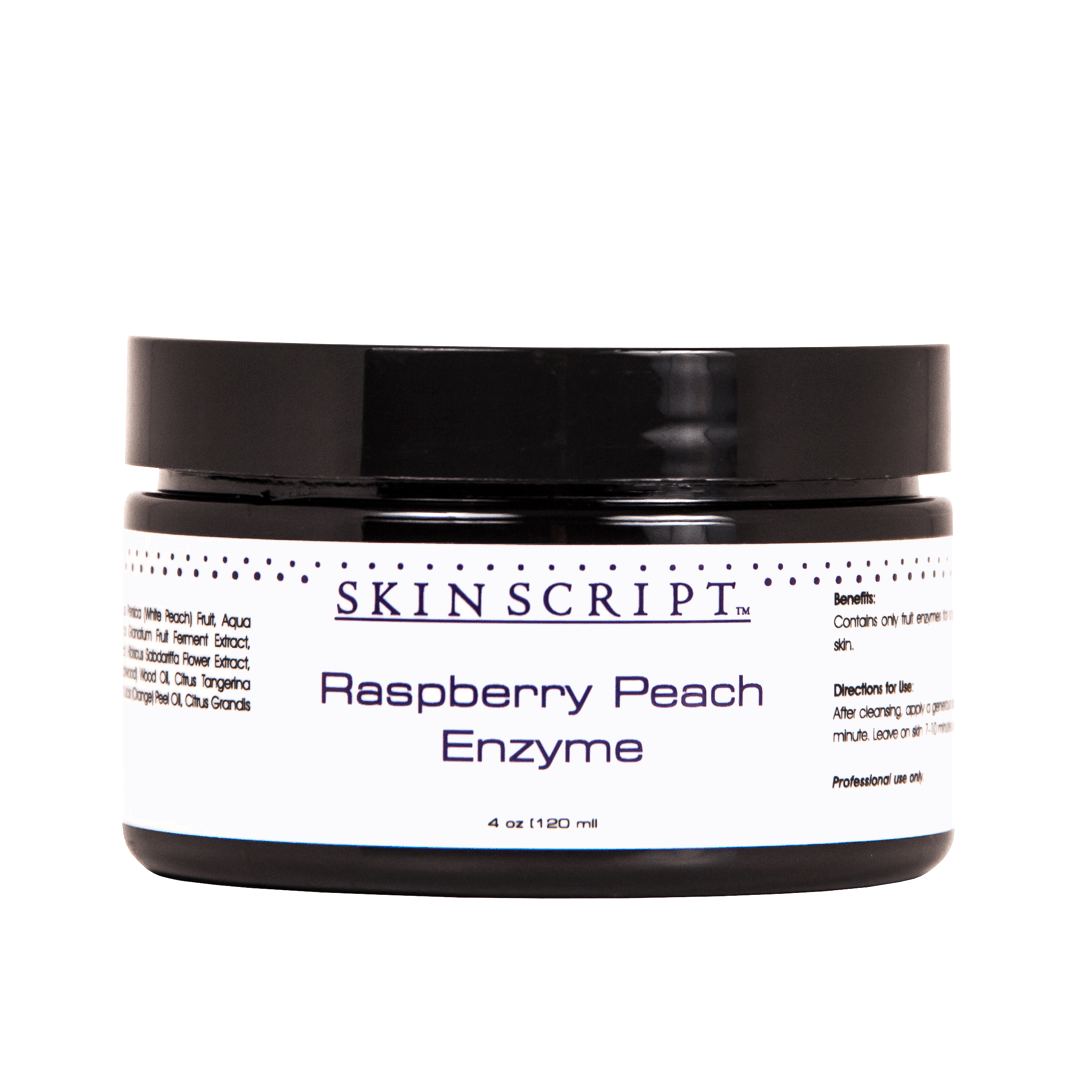 The Raspberry Peach Enzyme is packed with antioxidants for an anti-aging facial for all skin types. It contains only fruit enzymes, with no acids added, and it can be used on anyone, including pregnant women, sensitive skin, and clients with rosacea. The raspberry soothes skin irritations and provides anti-inflammatory-like benefits. Peach softens the skin and is aromatically relaxing, and hibiscus flower (flower power) and pumpkin add the exfoliating properties to this enzyme.
